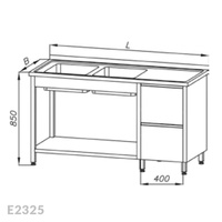 Stół ze zlewem 2-komorowym, blokiem dwóch szuflad i półką Egaz E2325 2300x600x850 mm