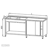Stół ze zlewem 2-komorowym i szafką, drzwi suwane Egaz E2300 2500x600x850 mm
