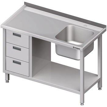 Stół ze zlewem 1-kom.(P), z blokiem trzech szuflad i półką 1200x600x850 mm