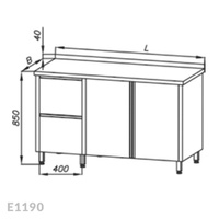 Stół roboczy z szafką, drzwi uchylne i blokiem 2-ch szuflad Egaz E1190 1400x600 mm