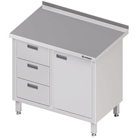 Stół przyścienny z blokiem trzech szuflad (L),drzwi skrzydłowe 900x600x850 mm