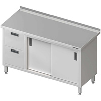 Stół przyścienny z blokiem dwóch szuflad (L),drzwi suwane 1600x600x850 mm