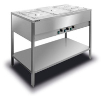 BJN.1GN 1 510 x 660 x 850 0,7 BJN.2GN 2 890 x 660 x 850 1,4 BJN.3GN 3 1245 x 660 x 850 2,1 BJN.4GN 4 1595 x 660 x 850 2,8 Standardowe wykonanie: • Zbiorniki niezależnie ogrzewane • Zasilanie: ~ 230 V 50 Hz • Regulacja temperatury: 30 ÷ 95 °C • Głębokość GN: max 200 mm • Wsporniki pojemników GN (nie dotyczy BSN.1GN) Wyposażenie dodatkowe: • Dodatkowe wsporniki pojemników GN