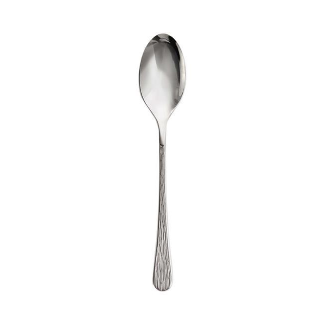 Sztućce Skye mają smukły i elegancki profil o klasycznych proporcjach i teksturowanym wykończeniu inspirowanym techniką złotniczą polegającą na struganiu długim młotkiem. Wykonane są z najlepszej stali nierdzewnej 18/10 z lustrzanym połyskiem.