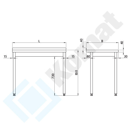 Stół do pracy, wykonany ze stali nierdzewnej chromowo-niklowej AISI 304; 1.4301 nierdzewnej i kwasoodpornej szlifowanej liniowo o najwyższej jakości, przeznaczonej do produkcji wyrobów dla gastronomii, przemysłu spożywczego czy medycznego. Zastosowane rozwiązania konstrukcyjne zapewniają stabilność i wytrzymałość mebla (profil 40x40mm i blachy 0,8-1,5mm) oraz funkcjonalność i łatwość utrzymania czystości. Charakteryzuje je wysoki standard wykonania, co powoduje, że są bardzo estetyczne i trwałe na wiele długich lat pracy.