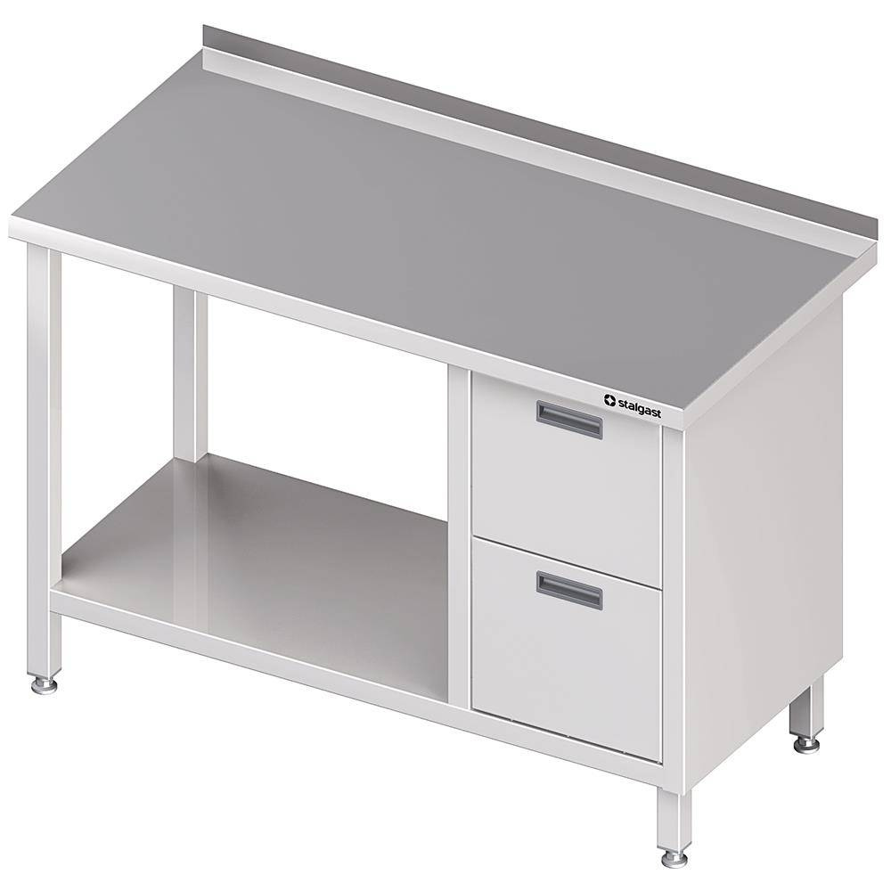 Stół przyścienny z blokiem dwóch szuflad (P),i półką 1600x600x850 mm