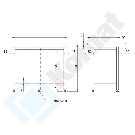 Stół przyścienny z półką 2100x700 mm KST-003