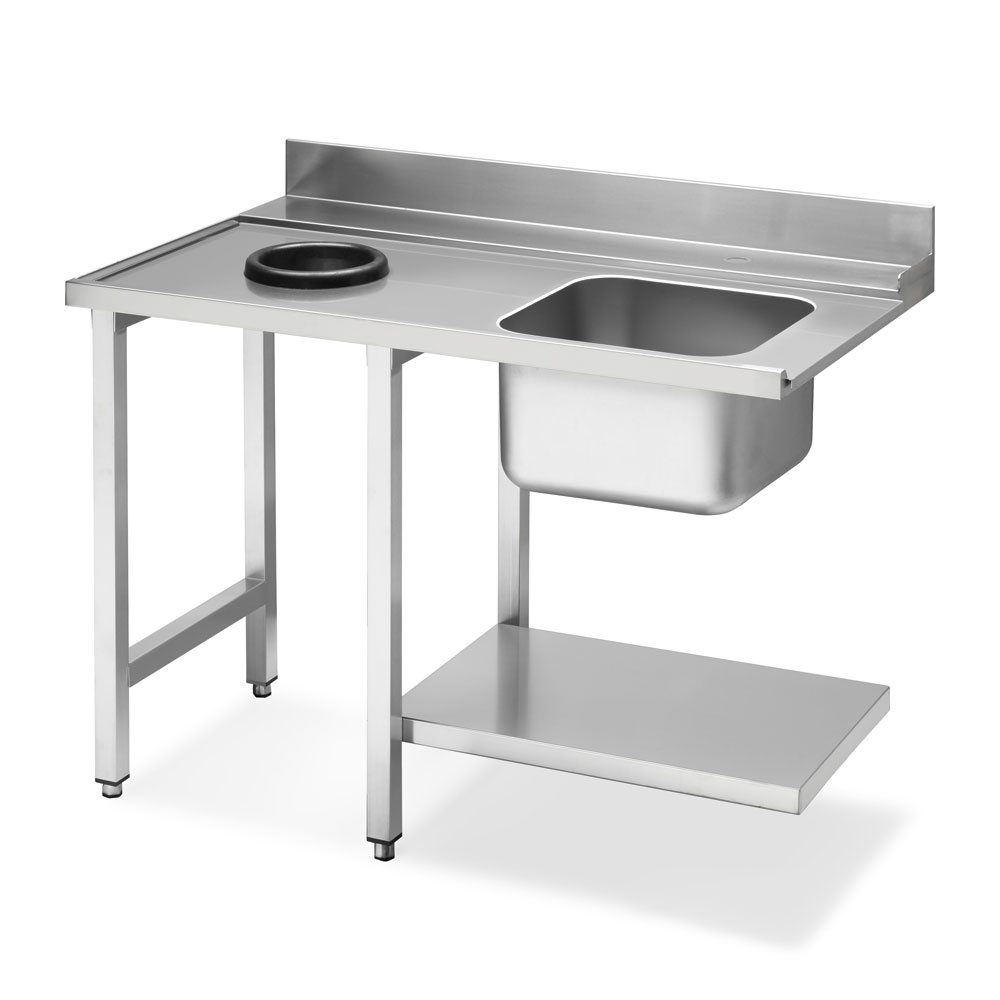 Stół załadowczy do zmywarki lewy ze zlewem i otworem na odpadki