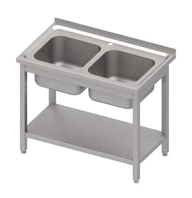 STÓŁ ZE ZLEWEM DWUKOMOROWYM MARKI STALGAST Z PÓŁKĄ