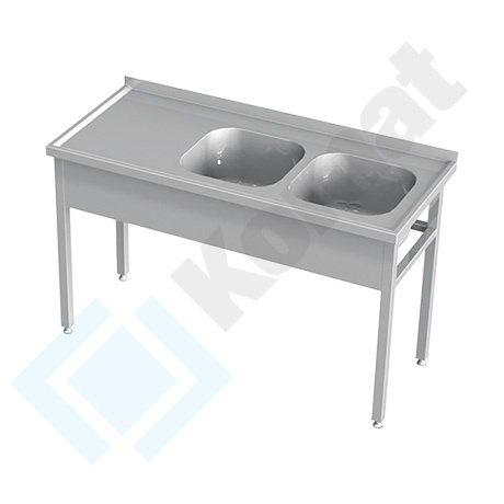 Stół ze zlewem dwukomorowym , wykonany ze stali nierdzewnej chromowo-niklowej AISI 304; 1.4301 nierdzewnej i kwasoodpornej szlifowanej liniowo o najwyższej jakości, przeznaczonej do produkcji wyrobów dla gastronomii, przemysłu spożywczego czy medycznego. Zastosowane rozwiązania konstrukcyjne zapewniają stabilność i wytrzymałość mebla (profil 40x40mm i blachy) oraz funkcjonalność i łatwość utrzymania czystości. Charakteryzuje je wysoki standard wykonania, co powoduje, że są bardzo estetyczne i trwałe na wiele długich lat pracy.