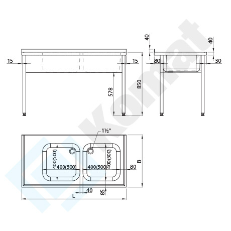 Stół ze zlewem dwukomorowym 1100x600 mm KST-121